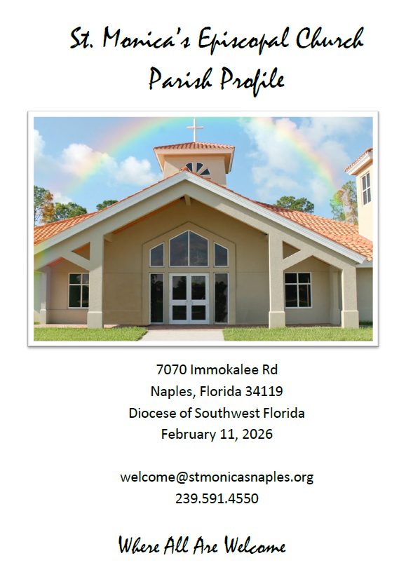 St. Monica’s history begins in 1991 when it was formed as a mission of St. John’s Episcopal Church and the Naples Deanery. St. Monica’s first worship services were held in the community room of the North Collier Hospital and then in an office building near Valewood Drive and Immokalee Road.